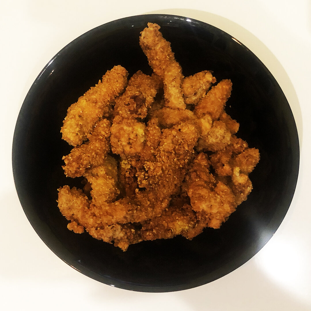 Вкусные. Сочные. Хрустящие. Ингредиенты: 1. Филе курицы 800 гр; 2. Мука 1 стакан; 3. Молотый красный перец 20 гр; 4. Бальзамический уксус 40 мл; 5. Яйцо куриное 2 шт; 6. Соль 1/2 ч.ложки; 7. Кукурузные хлопья 400 гр. Как приготовить Нагетсы дома. 1. Смешиваем уксус, соль и половину перца; 2. Нарезаем филе. Добавляем в маринад. Перемешиваем. Оставляем на 30 минут. Пока маринуется филе, подготовим остальные ингредиенты: 3. Измельчаем кукурузные хлопья; 4. Смешиваем оставшийся перец с мукой; 5. Взбиваем яйца; Процесс приготовления: 1. Опускаем филе в муку; 2. Затем в яйцо; 3. Затем снова в муку; 4. Затем снова в яйцо; 5. Затем в хлопья и хорошо обволакиваем; 6. Осталось опустить в масло и обжарить до золотистой корочки. Подавать можно с любыми соусами. Я рекомендую пикантный соус с нашего канала. Приятного аппетита :)