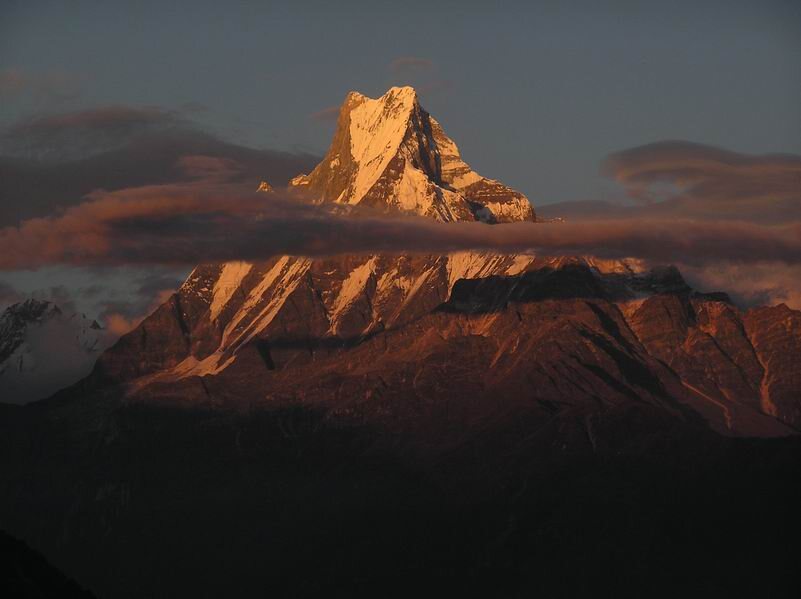Кажется, что уже не осталось горных вершин, которые не покорило бы человечество, но спешу вас обрадовать или может кого-то огорчить, как минимум одна такая точно есть. Гора Мачапучаре, что в переводе с непальского означает "Рыбий хвост", это часть горного массива Аннапурна высотой 6998 метров. Из-за своей формы и резких склонов гора кажется даже выше рядом стоящих гор, однако это не так. По поверьям непальцев, эта гора - дом Шивы и забираться на вершину строжайше запрещено, дабы не разъярить бога. Экспедиция на вершину Но даже несмотря на это, 18 апреля 1957 года, группа британских альпинистов всё-таки решила добраться до самой вершины горы. За 4 дня пути альпинисты достигли высоты 4000 метров и разбили свой базовый лагерь. После отдыха, группа была готова двинуться в путь, но проход к северному гребню преградила скальная стена. К счастью, в стене была трещина, через которую вся группа смогла пройти и 27 апреля установили лагерь на высоте 4900 метров. 2 июня восхождение на вершину за