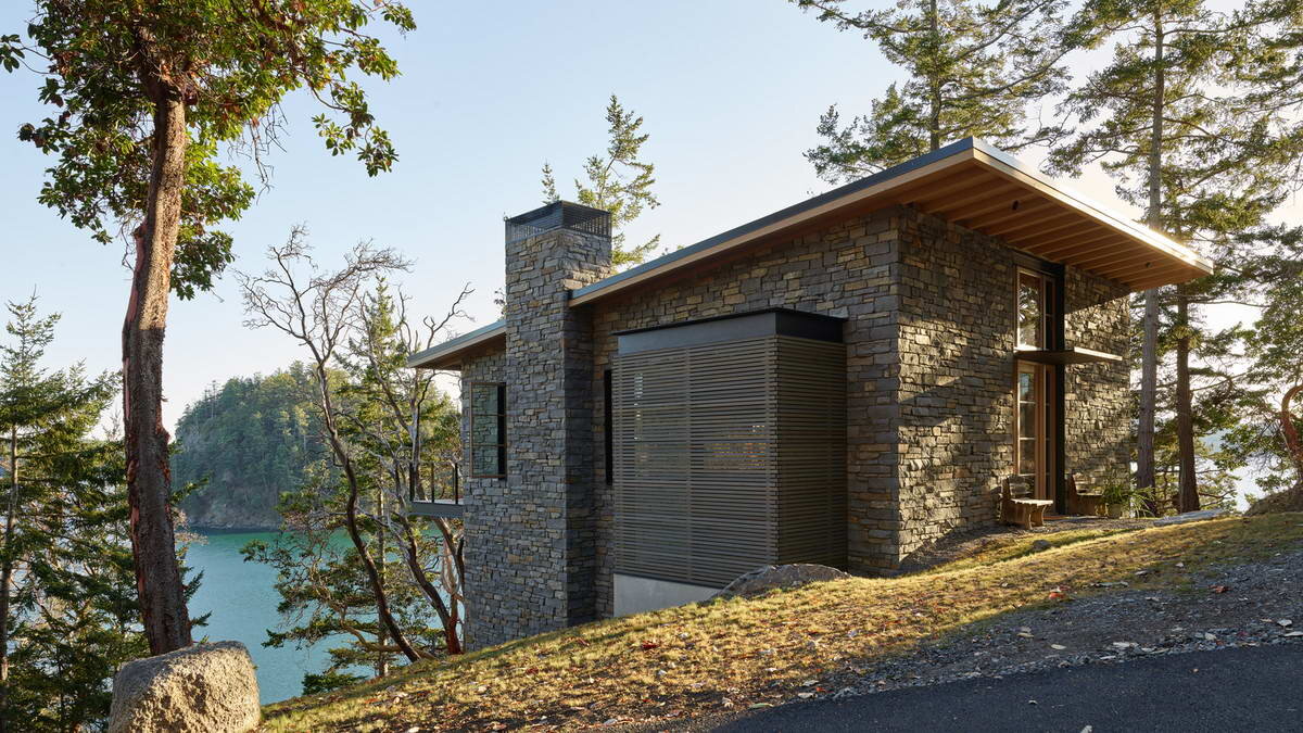 Владелец этого участка пришел к архитекторам в поисках личного места для отдыха, вдохновленного домом, который был уничтожен пожаром десятилетиями ранее на холмах Аппалачи. Задачей было не воссоздать его, а придать его духу новую форму на северо-западе Тихого океана. В процессе проектирования была разработана серия простых каменных объёмов, в результате чего из этой концепции возникли главный дом и гостевой, каждый из которых отвечает своему уникальному местоположению на участке. Вместе они обеспечивают друзей и семью комфортным жильем, предлагая убежище для владельца в главном доме. Взятые вместе, здания обеспечивают два связанных, но отличных способа оценить красоту этого места. Название: Дом на склоне в заповеднике (Hillside Sanctuary)