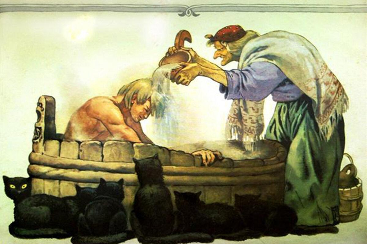 Сюжет фильма всем знаком — Женя Лукашин пьёт с друзьями в бане, после чего летит в Ленинград и оказывается в чужой квартире. Комментаторы неоднократно отмечали некоторую нереальность происходящего в этом фильме. А что если рассмотреть историю главного героя как сказку, в самом буквальном смысле? Итак, главный герой пьёт с друзьями в бане. Вроде бы ничего необычного, если не считать сущей мелочи. Баня считалась местом, тесно связанным с потусторонним миром. В бане жил банник, в бане проводились гадания, например святочные. Именно в бане Женя Лукашин доводит себя до состояния отключения сознания, переходя тем самым границу между мирами. Как средневековая ведьма, летящая на шабаш (многие религиозные исследователи этого вопроса прямо связывали полёт и сам шабаш со снами и иллюзиями), Женя спит и одновременно летит куда-то. После чего добирается до квартиры, думая, что вернулся к себе домой. Но оказывается в чужом доме, где правит женщина, хозяйка этого дома. То есть герой покинул привы