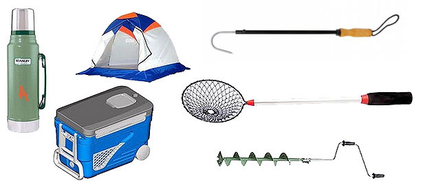 Снаряжения зимнего рыбака очень разнообразные и каждый бывалый рыбак выбирает для себя индивидуально. В обычный комплект рыболова входят: палатка, багор, ледобур, черпак, чемодан со снастями и термос. 1. Палатка-одна из нужных вещей рыбака, это комфорт и тепло при ловли рыбы. Большинство рыбаков используют её для ловли в ночной период. 2. Багор- он поможет вам в трудную минуту когда ваша пойманая зубастая не будет проходить в лунку. 3. Ледобур-один из самых распространён методов проделывания отверстия во льду, для ловли рыбы. 4. Чемодан со снастями-в него входят различные удилища, приманки, лески и много другое расскажи по подробнее. УДОЧКА ЗИМНЯЯ: В комплект носить зимней удочки входят-мармышка, хлыстик, леска, кивок. Комплектность меняется исходят от методов ловли и кого хочет поймать рыбак. Так же удочки бывают и на хищника- В её Комплектность входят мощные лески, катушка ну и конечно пр ивлекательная наживка. Чтобы создать интерес у хищника. Это были самые распространённое