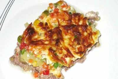 Вам понадобится: мясной фарш – 500 г лук репчатый – 2 головки масло растительное – 2 ст. ложки картофель – 4 шт. смесь овощей замороженная (какая вам нравится) – 400 г сухари панировочные – 1 ст. ложки кефир – 1 стакан яйцо – 1 шт. сыр твердый – 100 г перец черный молотый соль Время приготовления: 30 мин. (подготовка) + 50 мин. (запекание) Приготовление: Приятного аппетита!