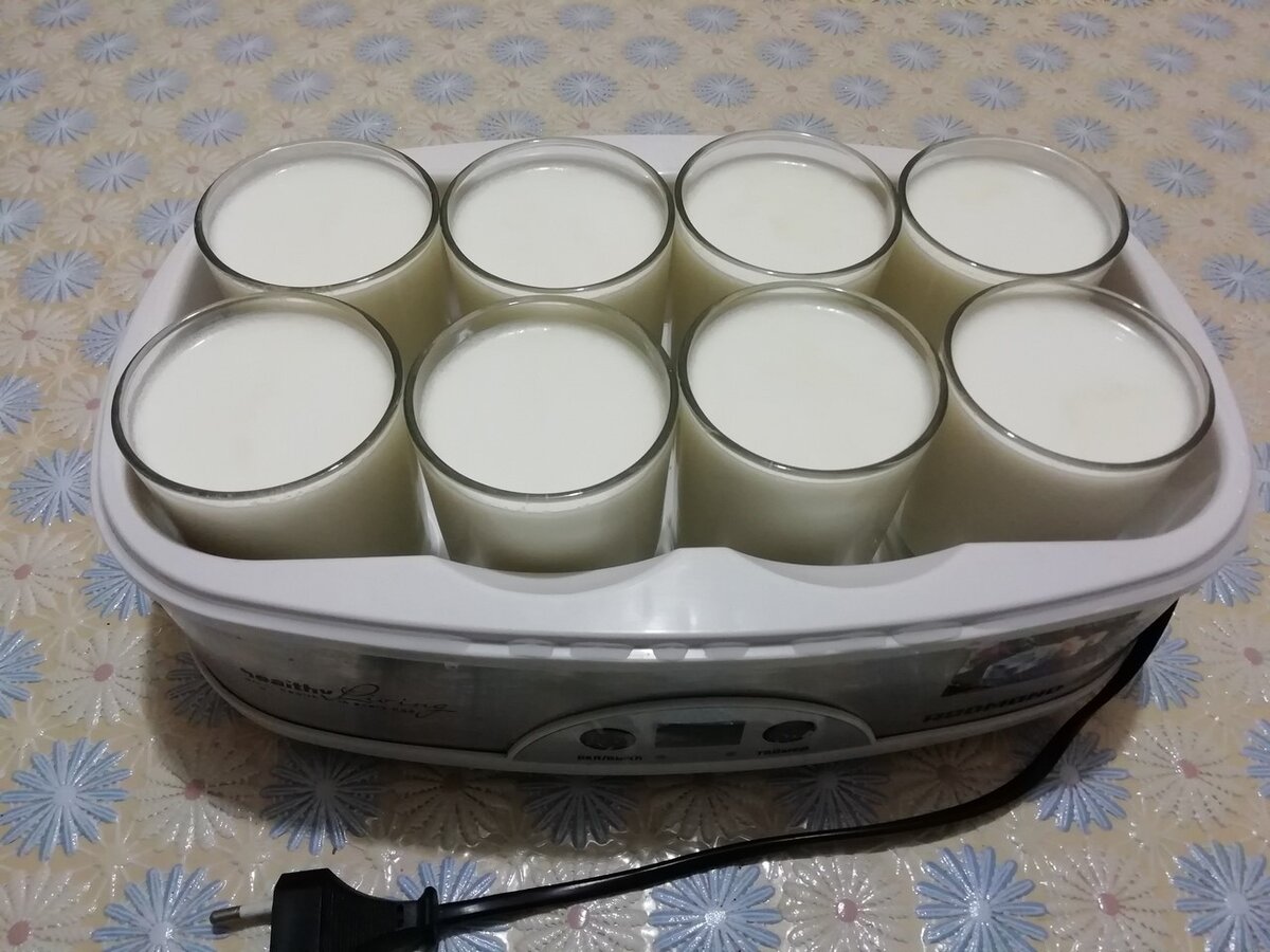 Несколько лет назад, когда я особо была озабочена своим правильным питанием, я решила приобрести йогуртницу. Побродив по магазину бытовой техники я выбрала йогуртницу фирмы REDMOND. Она меня покорила симпатичными стаканчиками, на которых можно устанавливать дату изготовления йогурта. Ну и мыть их легко. Я пробовала делать йогурт, используя в качестве закваски и "Активию" , и другие готовые йогурты в баночках. Брала и сухую закваску, специализированную. Но остановилась на таком вот варианте: Этот йогурт производится на молочном комбинате в соседнем городе, срок годности - 14 дней, значит бактерии молочнокислые, которые нам нужны, там довольно-таки живые))) Делать домашний йогурт совсем не сложно. Получается он нежным и вкусным, у меня вся семья ест с удовольствием, чему я очень рада - все ж таки "химии" в нем меньше, чем в магазинном. Можно добавить сахар или мед, или варенье, можно положить сухофрукты - но уже в готовый продукт. Итак, мой способ приготовления: Нам понадобится молоко