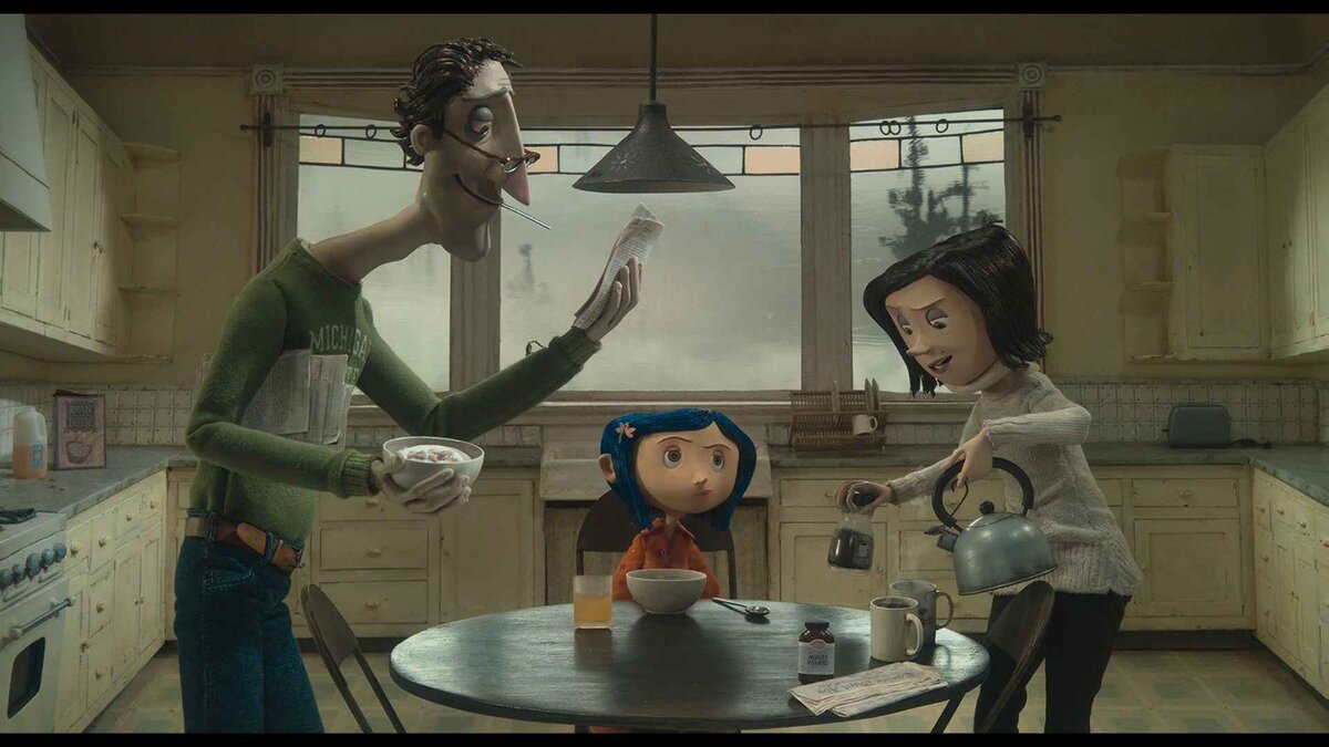 1. Коралина в Стране Кошмаров Коралина вместе с папой и мамой переезжает в старый трехэтажный дом с соседями. В один из дождливых дней, когда Коралине запретили гулять в саду, она обнаруживает запертую дверь в одной из дальних комнат. Мама открывает запертую дверь, но за ней оказывается только кирпичная стена. Один из соседей Коралины, старик, который живёт на мансарде и дрессирует мышей для мышиного цирка, неожиданно сообщает Коралине, что мыши предупреждают её не открывать дверь. Соседи с первого этажа, бывшие актрисы мисс Спинк и мисс Форсибл, гадают девочке на чаинках и соглашаются, что Коралине грозит страшная опасность. На всякий случай они дают ей амулет. В один из дней, когда родителей нет дома, Коралина вдруг замечает, что закрытая ранее дверь оказывается открытой. 2. Магазинчик самоубийств Сюжет разворачивается вокруг французской семьи Тюваш, которая держит магазин со средствами для разных видов самоубийств: петли, яды, кинжалы, револьверы. Магазинчик имеет девиз «Умрите, ил