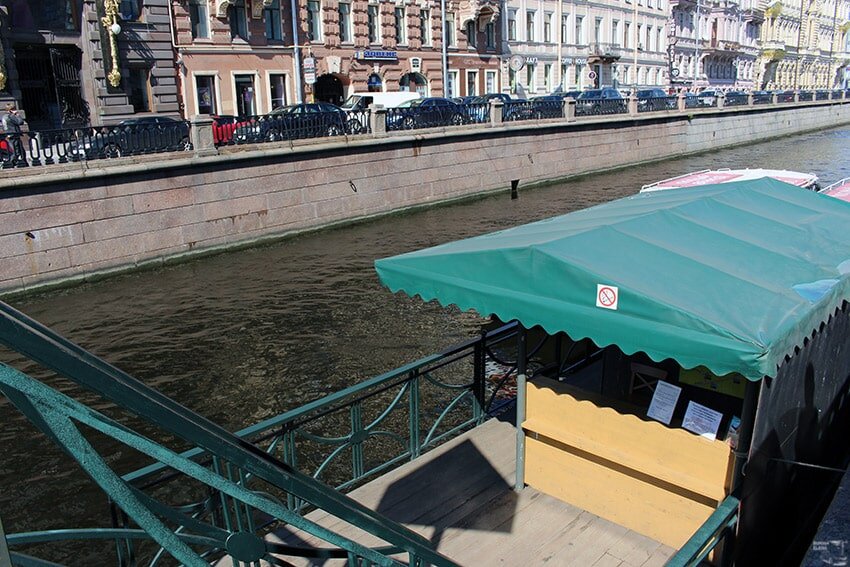 Водный транспорт отходит от многочисленных причалов. В Санкт-Петербурге их великое множество, ведь желающих прокатиться хватает с избытком. К нам ближним оказался причал на Грибоедовском канале, недалеко от знаменитого собора "Спас-на-Крови" и от Невского проспекта.