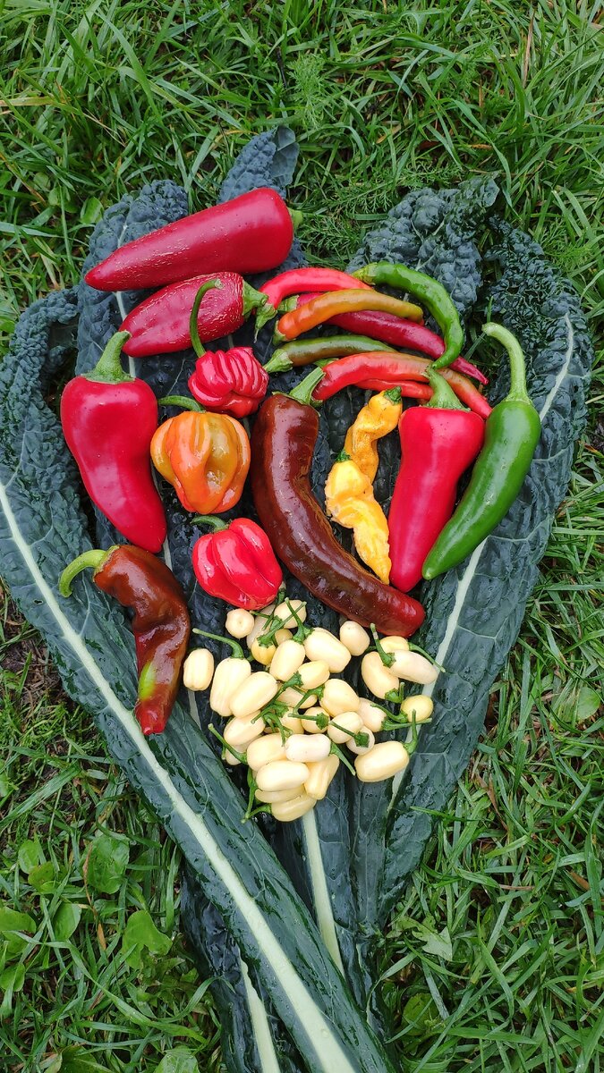 На фото первый урожай перцев. Весь собран в теплице, в открытом грунте практически ничего нет. Перцы полностью замерли в росте ещё в начале июня. Сначала тля, потом жара, холод, вечные дожди. Что делать мы живем в зоне рискованного земледелия. Халапеньо, хабанеро - красные от Агрофирма Седек пока это единственное, что выросло. Кусты очень мощные, завязей много, но отсутствие подкормок и погода сыграли свою роль. Наливаются и зреют крайне медленно. В целом перцем очень доволен. На следующий год буду сажать. Лимонный хабанеро, лимонный, ещё несколько видов перца, черт их знает какие🙄, это отдельная боль. Все мои бирки с названиями перцев выцвели🤷 Хабанеро Кристина от @efa_chili фантастика! - маленькие, круглые, белые😍, острые о очень ароматные. Могу себе представить, как он выглядит в хороших условиях. Буду обязательно сажать и постараюсь один куст на зиму перенести домой. Редкий австралийский сорт перца. На следующий год точно буду сажать, красивый, компактный и похоже очень ур