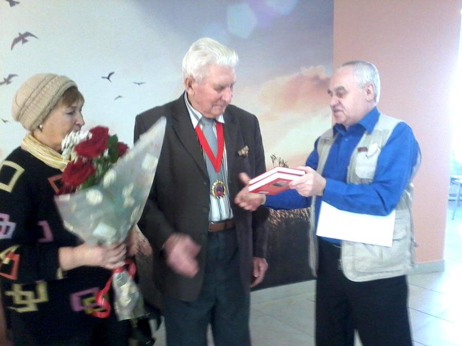22 ноября члены Тамбовского РК КПРФ посетили с приятной миссией своего товарища, руководителя регионального отделения ОД «Дети войны» М.Д. Богомолова. Михаилу Дмитриевичу исполнилось 90 лет, свой юбилей он встретил в Геронтологическом центре для ветеранов в Пригородном лесу Тамбова, где проходит курс медицинского оздоровления. В торжественной обстановке во время мероприятия, организованного в честь юбиляра администрацией медучреждения, коммунисты горячо поздравили своего товарища. Первый секретарь Тамбовского РК КПРФ В.С. Кутуков и коммунист Н.В. Щепилова вручили Михаилу Дмитриевичу почетную грамоту ЦК КПРФ за подписью председателя партии, букет цветов, двухтомник Г.А. Зюганова. Все поздравляющие отмечали, что, несмотря на возраст, ветеран партии по-прежнему проявляет большую активность и в партийных вопросах, и в работе общественных организаций. Медработники центра в свою очередь отметили, что такая активность продлевает жизнь. Молодец, Михаил Дмитриевич, так держать! Все мы вас поздр