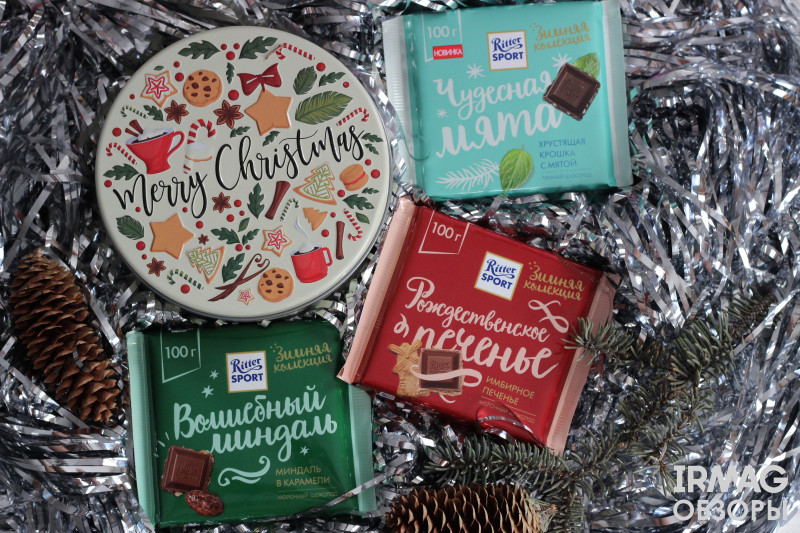 Обзор зимней коллекции Ritter Sport в сочетании с чаем Greenfield Christmas Mystery Как же я люблю начало зимы, предвещающее скорые праздники и каникулы! Хотя, я и так сейчас далека от рабочих будней, но похрустывание снега всегда настраивает меня на новогодний лад и влечёт украшать дом и наполнять его ароматами и вкусами, создающими атмосферу. Шоколадочки мои любимые. Всегда квадратные и всегда стограммовые. С новым дизайном, между прочим. Но не в упаковке счастье, давайте скорее открывать и дегустировать. Начнём с «Чудесной мяты»: тёмный шоколад с хрустящей мятной крошкой. Запах вы почувствуете сразу, немного более отчётливый, чем у садовой мяты, из которой я обычно делаю лимонад. Я бы сказала, яркий запах в сочетании с узнаваемым ароматом тёмного шоколада.