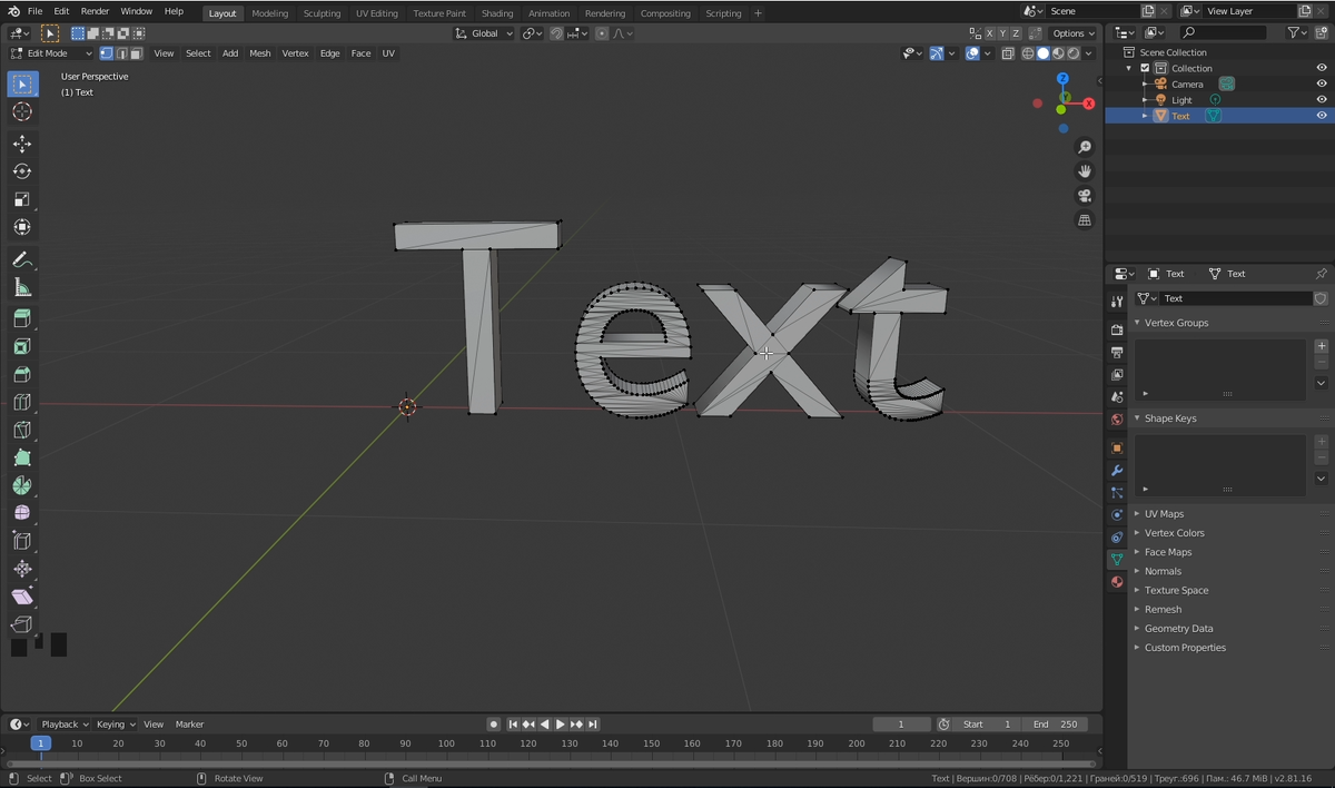 В этой статье мы рассмотрим такие модификаторы как Remesh, Screw и Skin. Модификатор Remesh Что он делает: Алгоритм восстановления меша объекта. Где применяется? Необходим для проблемных мешей, которые имеют слишком много треугольников и граней, или наоборот слишком мало. Меши текста представленного ниже как правило создают артефакты при деформации или подразделении. Модификатор Screw Что он делает? Создаёт меш вдоль определённой формы кривой или объекта. Где применяется? Это поможет при создании ваз или других объектов, которые имеют простой профиль. Модификатор Skin Что делает? Создаёт меш(кожу) вокруг рёбер объекта. Где применяется? Помогает быстро создавать болванки меша для органических существ и не только, используя простой ряд вершин и граней. В следующей статье мы рассмотрим такие модификаторы как Solidify, Subdivision Surfase и Triangulate.