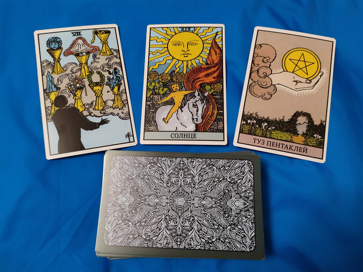 Добрый вечер, друзья! В сегодняшнем раскладе я хочу вам показать, о чём Овнов предупреждают карты в период с 11.12-18.12. Посмотрим, какие выпадут карты и что они нам расскажут, бить ли набат или же нас ждут танцы с бубнами. Но в любом случае, помните, что всё, о чём бы нам карты не показали, мы сами делаем свою жизнь и всё в наших руках. И так мы рассмотрим, что ждёт Овнов в бизнесе / работе-взлёт или падение, финансах, каким боком они к нам повернутся и отношения, будет ли любовь или разлад. Хочу вас предупредить, что расклад ОБЩИЙ и не для каждого подойдёт. Совет карт читайте в конце статьи. В этом раскладе выпали вполне неплохие карты: VII КУБКОВ в прямом положении СОЛНЦЕ в прямом положении ТУЗ ПЕНТАКЛЕЙ в прямом положении А теперь рассмотрим расклад, что же нам выпало и чего ожидать. БИЗНЕС / РАБОТА: тут выпала карта-VII КУБКОВ прямая. Возможно вам будут предлагать много фальшивых и неверных предложений, чтобы вас ввести в заблуждение с целью наживы или завладением вашего бизнеса