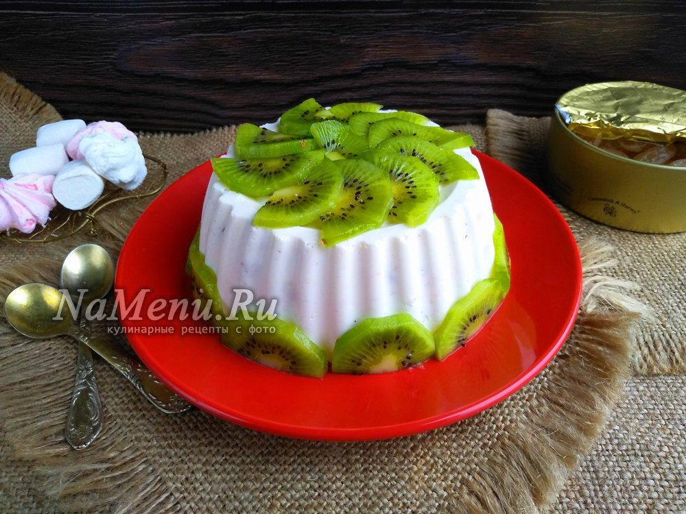 Творожный десерт с желатином и фруктами без выпечки со сметаной