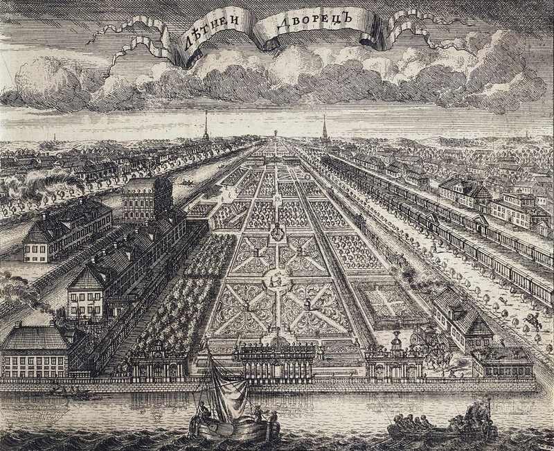 В 1709 г. началась активная фаза строительства в Летнем саду, включавшая в себя возведение деревянного дворца императора, создание фонтанов, высадку цветов и деревьев.