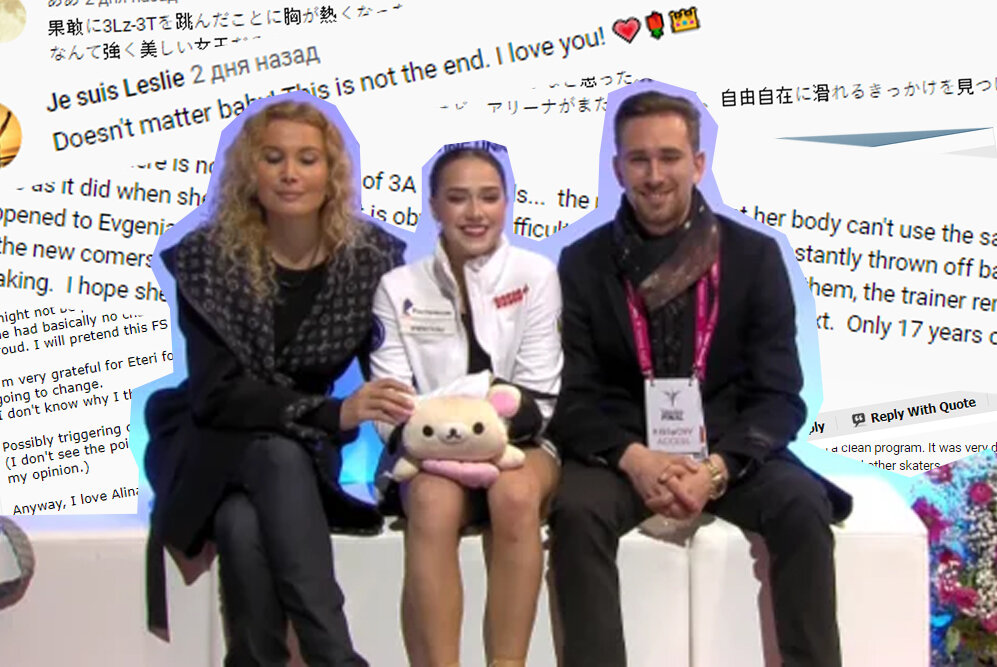 "Это было лучшее исполнением короткой программы в этом сезоне. Её выступление захватывает от начала до конца. Красивая музыка и отличное исполнение 👏 Я люблю тебя Алина Загитова!" BabySloth: "Замечательная Алина! Выходить на лёд последней не легко, но она это сделала! Это выступлен