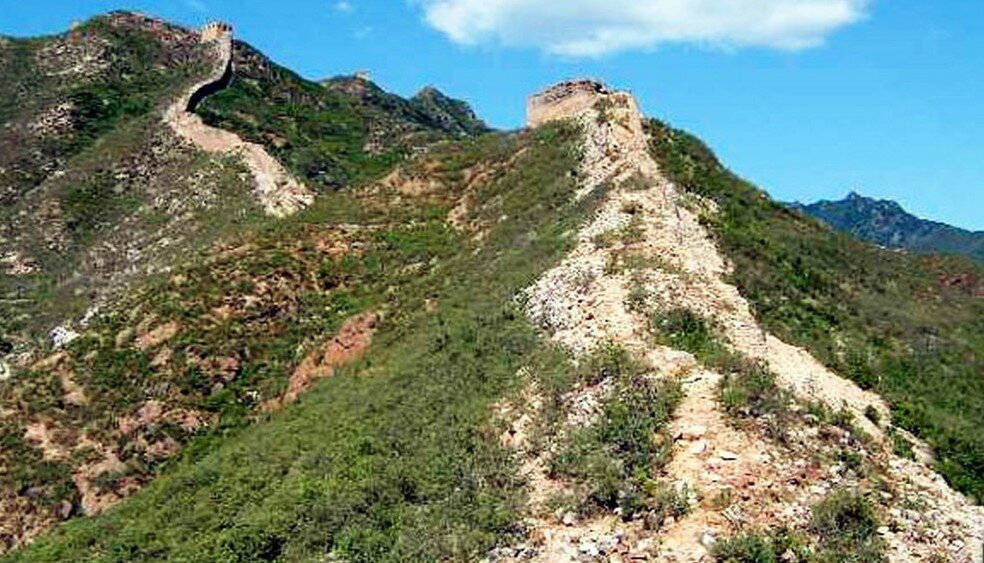 Те же участки, куда не добралась Китайская реставрация, либо как на фото выше - глина, палки, камешки, засыпка - либо содержат гораздо более интересные загадки, чем направление бойниц.