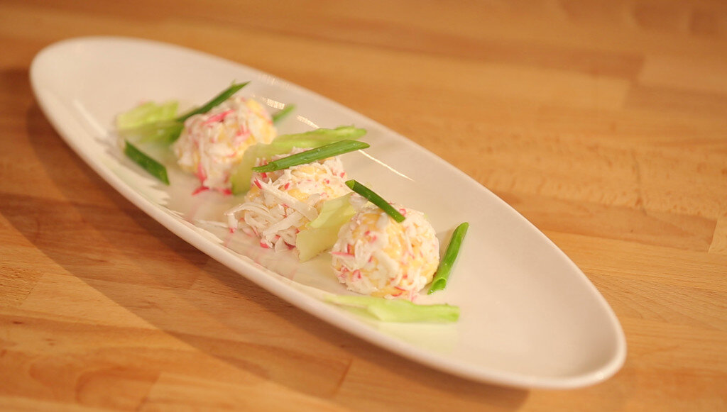 Как вы относитесь к крабовым палочкам? А крабовым салатикам? Я их очень люблю и поэтому перерыла весь интернет в поисках простых и быстрых блюд с крабовыми палочками! Сегодня я расскажу как сделать очень вкусную закуску - крабовые шарики, за буквально 5 минут ) Итак, нам понадобится: Итак, трём на мелкой тёрке крабовые палочки и сыр. Чеснок мелко нарезаем, пропускаем через пресс или тоже можно натереть. Смешиваем сыр с чесноком, заправляем майонезом. Из сырной массы катаем шарики и обваливаем их в стружке из крабовых палочек. По желанию можно украсить холодную закуску зеленью. Приятного аппетита! ;)