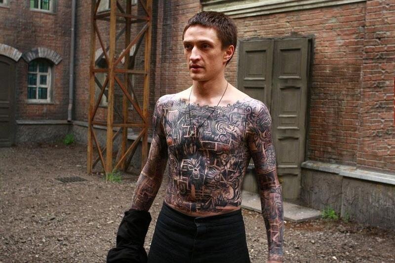1 – Для каждой съемки Юрию Чурсину “рисуют” татуировку с планом тюрьмы одновременно 5 человек, у которых уходит на это 6 часов.