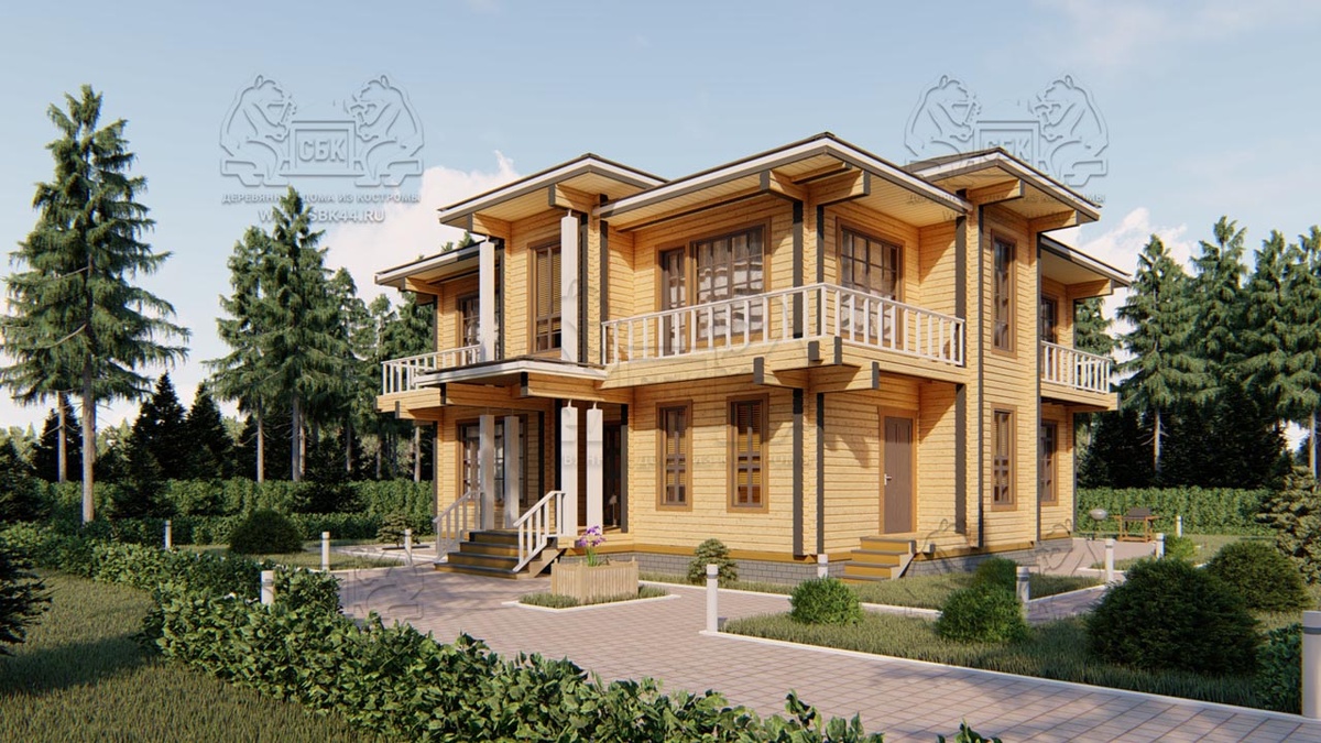 Хорошо, что вы открыли эту статью! Если Вы интересуетесь проектами деревянных домов, то согласитесь, что редко можно увидеть такой вариант деревянного дома, ещё и из бруса. На этом канале буду освещать различные варианты из каталога проектов домов из бруса и тонкости строительства деревянных домов. Так что, не стесняемся, оцениваем проект в комментариях по шкале от 1 до 10, это будет мотивировать для размещения дальнейших постов и проектов. Заранее спасибо! Теперь по проекту. Его характеристики и особенности. Габариты: Технические особенности: Помещения 1-го этажа: Помещения 1-го этажа: с лестницы мы попадаем: У каждой комнаты свой выход на балконы, вокруг всего дома. Фасады Главный фасад с входной группой и колоннами из бруса в 2 уровня Боковой фасад с отдельным входом в котельную. Задний фасад дома шириной 12,5м. Большая терраса с плоской крышей (о плоских крышах, так же будет отдельная статья). Боковой фасад с большим окном на лестницу. Ну и напоследок внешние виды Дома сбоку Та