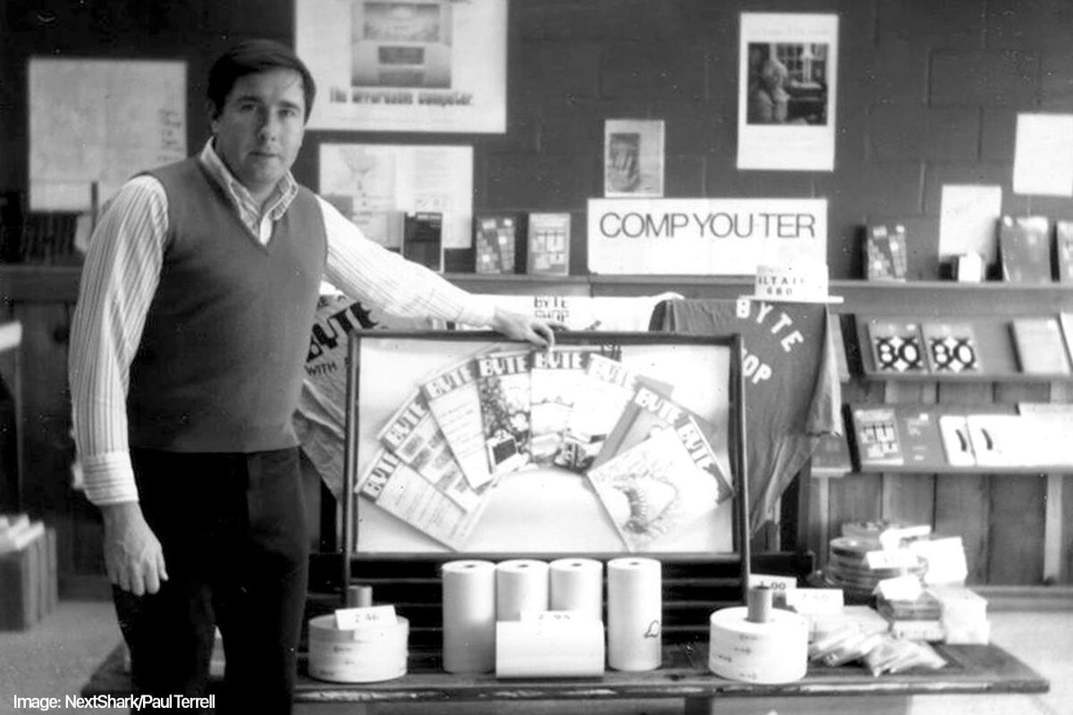 [via] 8 декабря 1975 года предприниматель из Сан-Франциско Пол Террелл открывает один из первых в мире компьютерных магазинов, под названием «Byte Shop», который продает компьютеры Apple-1, созданные Стивом Возняком. 1970-е годы были периодом, когда создание персональных компьютеров было больше похоже на хобби, которым увлекались наиболее продвинутые в технологиях разработчики. Сооснователь Apple, Стив Возняк подумывал даже о том, чтобы предоставить схемы своего компьютера Apple всем желающим, хотя Джобс думал иначе. Начало сотрудничества с Apple Открыв свой первый магазин в период бума популярности персональных компьютеров с продажи устройств компании Altair, Пол Террелл к концу 1976 года успешно расширился до 58 компьютерных магазинов. Террелл встретившись с Джобсом, который пришел в магазин с предложением, продать Apple-1, вначале не выразил интереса к предложению. Хотя Apple-1, был функционирующим компьютером, он предложил Джобсу собирать полностью укомплектованные устройства. Стре