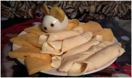 Новый 2020 год пройдет под покровительством Белой Металлической Крысы. Этот проворный зверек не терпит голода. Это значит то, что праздничный новогодний стол должен быть щедрым на угощения. Все блюда должны быть приготовлены с душой. На стол необходимо постелить белую скатерть и поставить светлую посуду. Лучше, что бы она была новой, или той, которой редко пользуемся. Главное блюдо – сырная тарелка, на которой нарезаны и уложены различные сорта сыра. Украсить такую тарелку можно «мышатами», сделанными из яиц. Новогодние салаты и холодные закуски неотъемлемая часть новогоднего стола. Они требуют особого внимания. Здесь необходимо не только вкусно приготовить, но и красиво и необычно подать. Сегодня я хочу предложить вам несколько рецептов новогодних блюд, которые создадут атмосферу праздника на вашем столе. С детства новый год ассоциируется у нас с запахом хвои и ароматом мандаринов. Давайте удивим гостей необычными закусочными мандаринами, приготовленными к празднику. Они не то