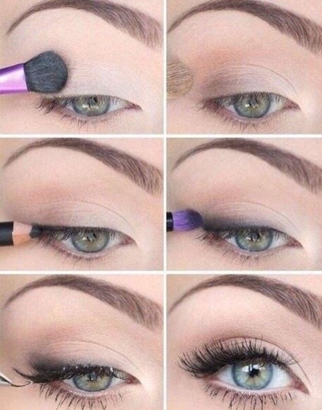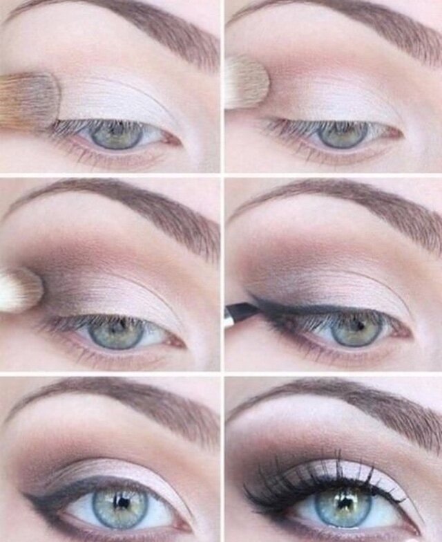 Урок макияжа пошагово: 1️Нанесите светлые матовые тени на подвижное веко. Используйте большую купольную кисть для теней.⠀ 2️Нанесите коричневый оттенок на внешний уголок подвижного века. Используйте плоскую купольную кисть для теней. 3️Прорисуйте ресничный край чёрным карандашом. 4️Растушуйте карандашную линию по направлению к внешнему краю века. Используйте кисть для теней с коротким ворсом или кисть карандаш. 5️Добавьте хайлайтер во внутренний уголок глаза. 6️Подведите слизистую белым карандашом, накрасьте реснички тушью и добавьте накладные реснички. Пошаговый урок 2 1️Нанесите белые матовые тени на подвижное веко. Используйте большую плоскую кисть для теней. ⠀2️Нанесите бежевый оттенок в складку века и на внешний уголок подвижного века. Используйте плоскую купольную кисть для теней. ⠀3️Нанесите темный оттенок на внешний уголок глаза. Используйте плоскую купольную кисть. ⠀4️Голевой подводкой нарисуйте стрелку и выведите кончик. Прорисуйте ресничный край нижнего века от середины гла