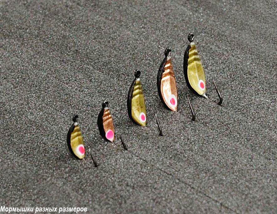 Размеры их имеют также большое разнообразие. Бывает мормышки от 2—3 мм до 8—10 мм. Летние мормышки намного больше зимних.