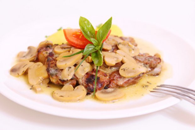 250 г шампиньонов 100 мл говяжьего бульона (можно из кубиков) 200 мл взбитых сливок 1 лук 4 тонких ломтика свиного мяса как на отбивную 2 столовые ложки сливочного масла 1 щепотка соли и перца немного масла для обжарки 1. Очистить грибы, вымыть, обсушить кухонным полотенцем и нарезать тонкими ломтиками. Очистить лук и мелко нарезать. 2. Отбить мясо и приправить солью и перцем, обжарить на масле, жарить на слабом огне в течение получаса и часто переворачивать. Выньте мясо из сковороды и отложите в сторону. 3. Разогреть сливочное масло в остатке от жарки, добавить нарезанный лук и грибы, жарить до тех пор, пока из грибов не испарится вся жидкость. Добавить бульон, затем взбитые сливки и приправить соус солью и перцем. 4. Положите мясо в соус и оставьте тушиться на 2 минуты на слабом огне. 5. Подавать с рисом и зеленым салатом. Приятного аппетита! Подписывайтесь на другие страницы с нашими рецептами: 1. https://www.facebook.com/vsereceptiki/ 2. https://www.instagram.com/vse_receptiki/