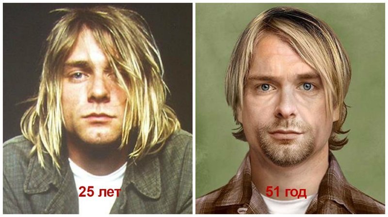 Все мы слышали о Клубе 27 - списке талантливых людей, что так рано ушли из жизни. Многие их имена мы можем вспомнить сразу , они навсегда останутся в нашей памяти и в истории музыки , но давайте представим , как бы они выглядели сегодня. Курт Кобейн Курта Кобейна считают самым крутым рок-музыкантом 90-х. Он покончил с собой в возрасте 27 лет. Если бы этого не случилось, сегодня ему было бы за пятьдесят. Бобби Дарин Один из самых популярных исполнителей джаза и рок-н-ролла в конце 1950-х. Умер в 37 лет. Сегодня ему было бы 82 года. Элвис Пресли Король рок-н-ролла скончался в 42 года. Сегодня ему было бы уже 83 года. Боб Марли Регги-музыкант скончался 1981 году в возрасте 36 лет. Сегодня ему было бы уже 73 года. Джон Леннон Легендарному участнику группы "Битлз", убитому в 1980 году, сегодня могло бы исполниться ужа 77 лет. Джими Хендрикс Один из величайших рок-гитаристов в истории. Умер в 27 лет. Сейчас ему было бы аж 75 лет. Карен Карпентер Певица и барабанщица группы The Carpen