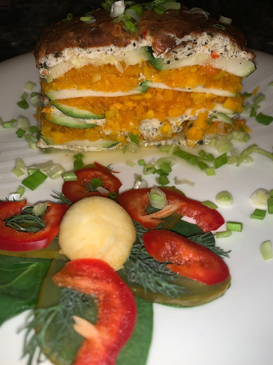 Разбиваем стереотипы ЧТО НУЖНО? Все понятно? Справа, белое, на ваше усмотрение - творог/сметана В маленьких емкостях - базилик и мускатный орех. ЧТО ДЕЛАЕМ? Кабачок моем и нарезаем. Здесь есть два пути. Один для тех, кто не любит, когда хрустит. Тогда лучше кабачок поместить минут на 5-7 в кипящую воду. Я предпочитаю «аль-денте», поэтому пошла более короткой дорогой. Тыкву освобождаем от семян и кожуры. Мякоть рубим в блендере. Яйцо, сметану, сыр, мускатный орех, перец Чили (мелко рубим) и базилик смешиваем в емкости. Включаем духовку на 200. Форму для лазаньи смазываем растительным маслом. И начинаем выкладывать слои. Сверху смесь со сметаной. Сверху кладём снова кабачок и выкладываем на него тыкву. Повторяем пару раз. Самое главное, чтобы вам хватило сырной смеси на верхнее покрытие. Наливаем немного воды. Ставим в духовку на 50 минут. Время от времени стоит подливать воды. И вот она, красавица лазанья. Ее можно практически всем, у кого нет никаких обострений пищеварительной системы,