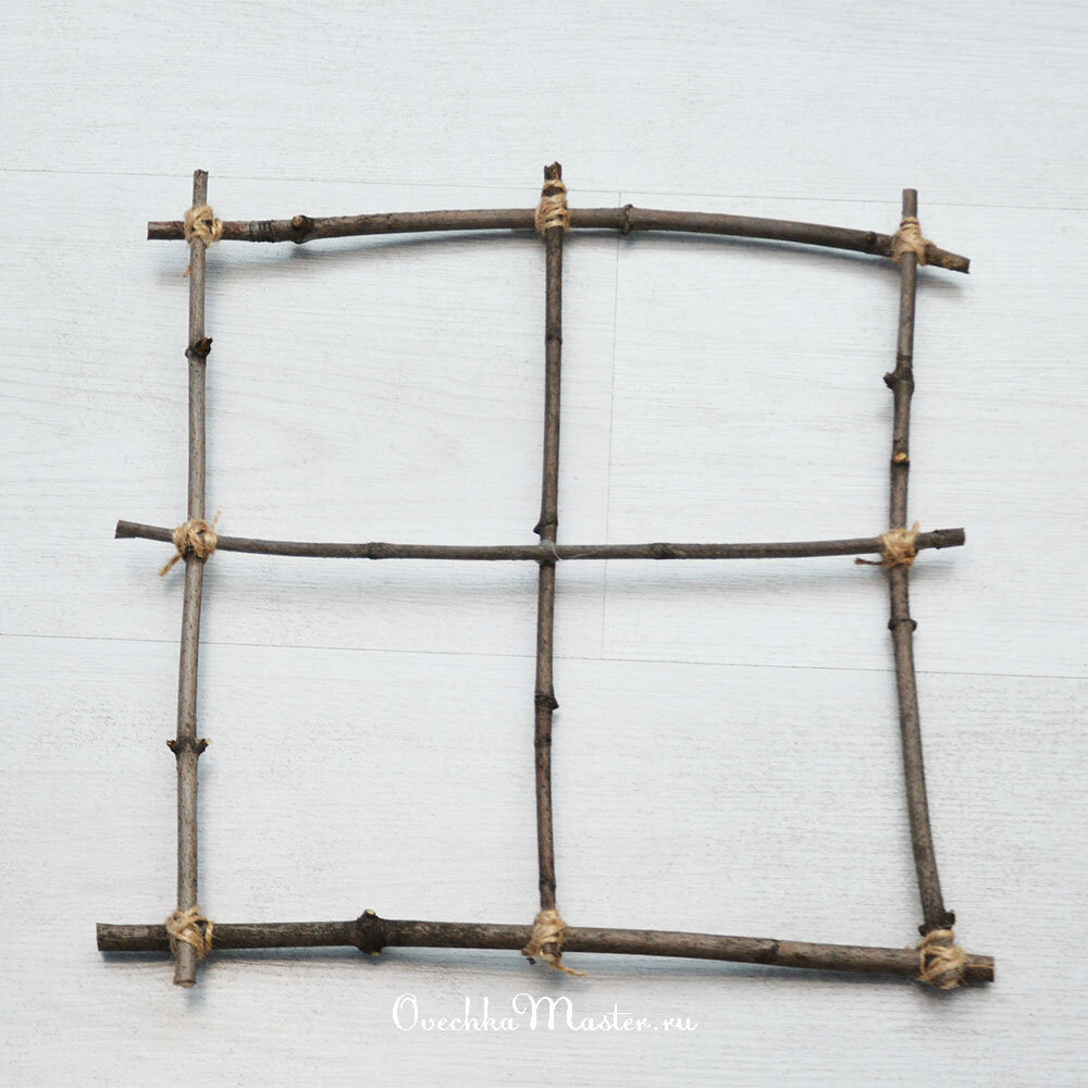 Всем добрый день. В этом мастер-классе я все-таки позволила себе использовать для декора кое-что готовое. Хотя изначально ставила себе задачу обойтись только самодельными элементами. Но зато покажу, как сделать своими руками маленькие хлопковые цветочки для веток. Основа для этой композиции у меня среднего размера. Я ее слегка декорировала красной акриловой краской, тонировала с помощью губки. Мой маленький секретик, как я сушу подобные элементы. Использую плотную проволоку, делаю крючок (с 2-х сторон), а дальше можно прикрепить куда угодно, хоть к люстре, как у меня здесь. Дальше подготовила два больших пучка веток. Их я также слегка тонировала с помощью губки и акриловых красок. Это очень быстро в отличии от досконального окрашивания кисточкой. На фото не очень заметно, но тут два разных оттенка: алый красный и темно-красный. Веточки привязала, сделав имитацию занавесок. С помощью секатора отрезала лишнее (внизу подравняла и сверху укоротила самые длинные). А также достала из рукод