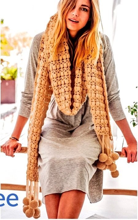 В первую очередь нужно определиться что называть палантином? Принято считать что палантин это прямоугольная накидка. Во многом вязаный палантин похож на шарф, но в отличии от шарфа палантин носится на плечах. И именно в форме отличие палантина от шали и шарфа. Представляю вашему вниманию подборку шарфов и палантинов со схемами: Шарф с узором пышными шишечками Палантин крючком с ажурными дорожками и косами Летний шарфик крючком Описание вязания шарфа крючком: Для начала вязания шарфа наберите цепочку из возд. п., длиной равной желаемой длине шарфа. При наборе петель учтите, что раппорт узора составляет 30 +5 возд. п. Для начала вязания первого ряда шарфика, поверните работу и сделайте 3 возд.п. подъема, далее вяжите 4 ст. с/2н и наберите цепочку из 25 возд. п., которую присоедините по ряду пропустив 25 петель. Повторяйте узор шарфика: выполните 5 ст. с/2н и 25 возд.п., закончите ряд 5-ю ст с/2н. Для второго ряда работу поверните и повторяйте действия предыдущего ряда, так образуютс