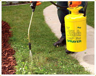 Технология применения гербицидов от газонных сорняков общего действия на газонах достаточно проста, но при этом необходимо соблюдать некоторые правила. Необходимо РАВНОМЕРНО распределить гербицид по поверхности газона в соответствии с дозировкой указанной на упаковке. Сделать это можно либо вручную, либо с помощью механических газонных сеялок, приспособленных, кроме посева травы, для дозированного внесения удобрений и гербицидов, находящихся в порошковом или гранулированном состоянии. Применение гербицидов нужно обязательно увязать по времени с периодом сухой и не дождливой погоды, но не в засуху — например, утром, когда трава еще покрыта росой. В случае если дождя не будет два дня – тщательно полейте газон, а спустя 2-3 недели прочешите поверхность лужайки граблями (желательно веерными) для удаления отмерших листьев сорняков. Время года, наилучшим образом подходящее для применения гербицидов первой группы конец весны (май) и до середины лета. В случае если однократная обработка не дала нужного результата необходимо повторить описанные выше операции, а если и она не дала полного избавления газона от сорняков необходимо либо прополоть остатки вручную, либо перейти к применению современного и действенного средства – гербицида избирательного действия.