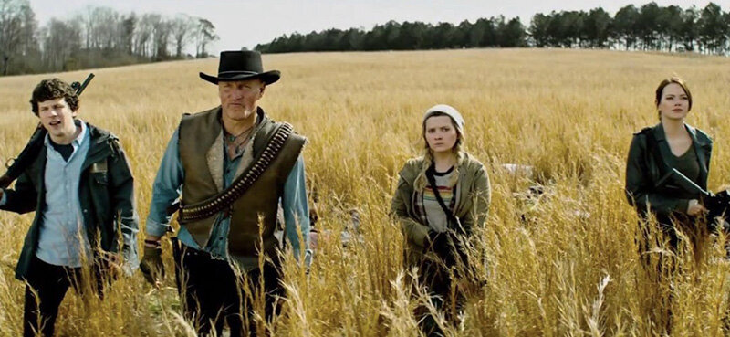 И тут завертелось! Завертелось все то же самое, что и в первой части, только еще веселее, масштабней, и с бОльшим количеством действующих персонажей. Так, фильм открывается таким же крутым слоу-мо зомби мочиловом, как и первая лента, только уже под другую песню Металлики, - "Master Of Puppets", вместо "For Whom the Bell Tolls". А затем начинается такой же "zombie comedy apocalyptic road movie" с закадровыми комментариями персонажа Джесса Айзенберга, который за десять лет, прошедших с событий первого фильма, расширил свой список "правил выживания" с тридцати двух до семидесяти двух записей. Название ленты, кстати, является отсылкой к одной из них, под номером два - "double tap", всегда добивай зомби в голову. Однако расширился в сиквеле не только этот список, но и вообще всё, а вместо двух номинантов на премию Оскар (Вуди Харрельсон и Эбигэйл Бреслин в первом фильме), в главных ролях их теперь четыре, потому что с 2009-го года и Джесс Айзенберг, и Эмма Стоун получили номинации, а Эмма, к тому же, и саму статуэтку за "La La Land" (2016) как лучшая актриса в главной роли. Да и само количество главных ролей в "Зомбилэнд 2" расширилось, и теперь к таковым еще можно причислить гламурную дурочку Мэдисон, в роли которой блистает Зои Дойч, хиппующего пацифиста Беркли, в забавном исполнении Авана Джогия, и Неваду, в образе которой предстает как всегда мегасексуальная Розарио Доусон. При этом "химия" между всеми этими персонажами осталась бесподобной, а шутки - такими же смешными, а местами даже еще смешнее из-за вкрапления в ленту попкультурных реалий, "выстреливших" в "десятых" годах этого века. Вроде франшизы "The Walking Dead", которая, по словам читавшего эти комиксы в одном из эпизодов Колумбуса "совсем не реалистична", или президентства Дональда Трампа (Donald Trump), на которое тут есть забавная отсылка. Как есть тут масса забавных отсылок и к другим зомби лентам и социальным явлениям, вроде многочисленных конкурсов и наград почти на любые темы, которые в пространстве ленты трансформировались в достижения на тему "лучшего убийства зомби", самое уморительное из которых итальянское :)
