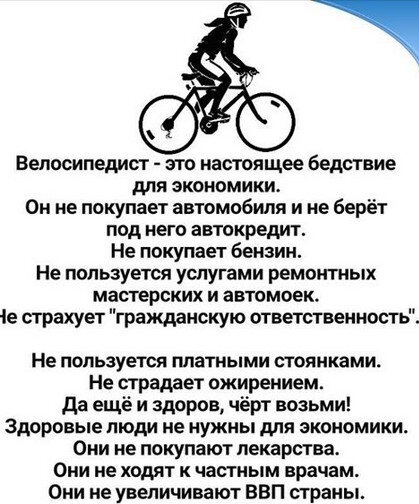 Итак, первое утверждение: Он не покупает автомобиля и не берет под него кредит. Не покупает бензин. Не пользуется услугами ремонтных мастерских.
