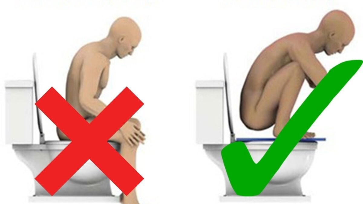 Добрый день мои дорогие сегодня мы рассмотрим деликатную но очень важную тему. Правильного посещения туалета многие даже не догадываются сколько ошибок совершают в этой одной из самых посещаемых комнат дома а в итоге появляются проблемы со здоровьем неизвестно чем вызваны. Не правильная посадка скорее всего при очередном посещении туалета вы редко обращаете внимание на то как располагаетесь на унитазе а зря самая распространенная посадка с ногами согнутыми под прямым углом приводит к затруднению прохождения естественного стула его блокировки и как следствие запором. Раздражение кишечника и прочим неприятностям вспомните как ходят в туалет маленькие дети или взрослые на природе где нет унитазов. Вот пример более естественно в расположении тела и ног под углом в 35 градусов. Конечно унитаз вы не выбросите да из горшка давно выросли но подложить под ноги скамеечку или специальную подставку чтобы сократить угол изгиба до 35 градусов вполне реально. Долгое нахождение в туалете. Использ