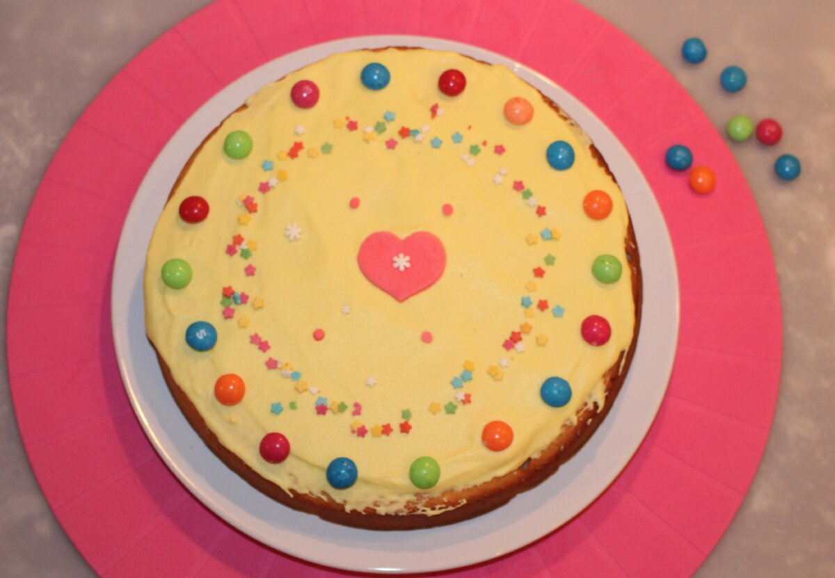 Когда моя дочка еще только родилась и любила спать у меня на руках, я читала книгу Памелы Друкерман "Французские дети не плюются едой". Кроме советов по воспитанию детей, там есть и рецепт йогуртового торта, который французские родители готовят вместе своими детьми на выходных. Дочка подросла и теперь мы можем приготовить этот торт вместе с ней. Ингредиенты Все ингредиенты отмеряют баночками из-под йогурта емкостью 150 мл. Приготовление 1. Смешиваем йогурт, яйца, сахар, ваниль и растительное масло. 2. В отдельной миске просеиваем муку и разрыхлитель. 3. Добавляем мучную смесь к йогуртовой и перемешиваем до однородности. Долго не вымешиваем. 4. Перекладываем смесь в форму диаметром примерно 22,5 см., смазанную растительным маслом. Ставим в духовку на 190° на 35 минут. Проверяем на готовность деревянной зубочисткой. 5. Даем остыть и... дальше либо съедаем прямо так, либо достаем все, что дома завалялось подходящего из кулинарного декора и просто сладкого и даем волю фантазии. Я под н