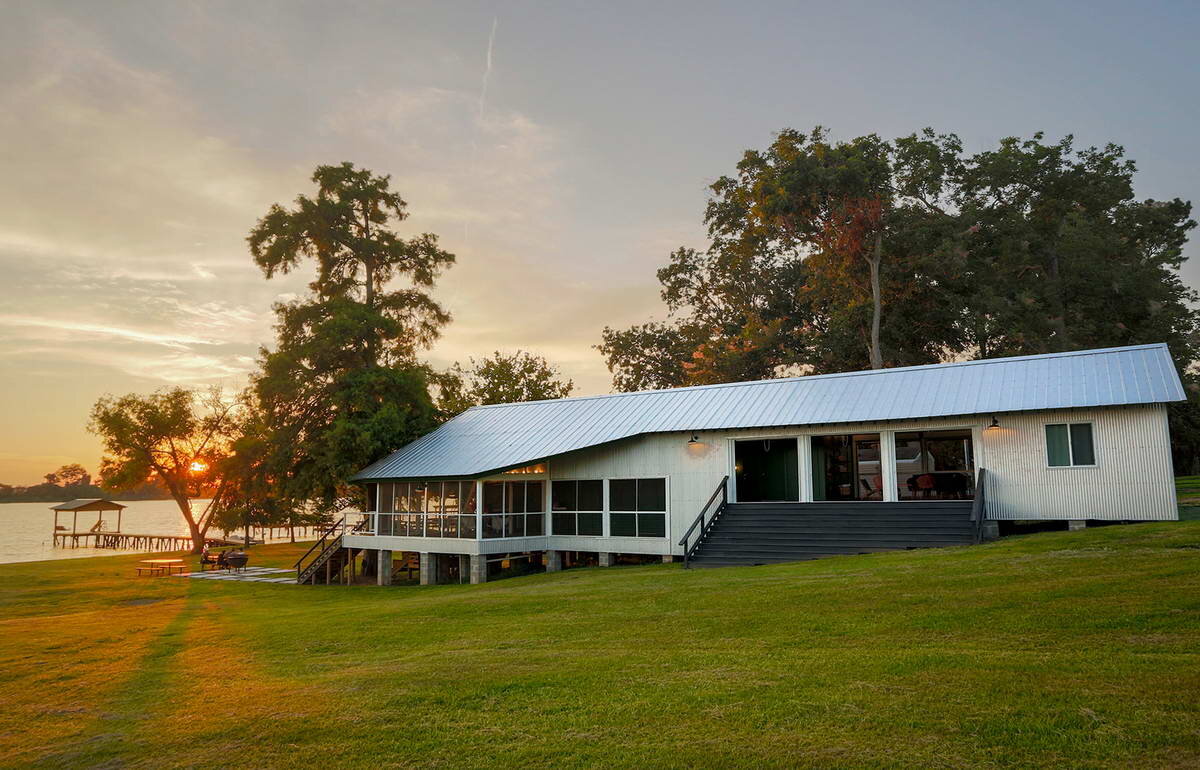 Заказчики, которые провели детство летом у воды, захотели создать своеобразный лагерь для выходных и рыболовных сезонов. Простой одноэтажный дом расположен на наклонном участке между дорого и озером. В нём 3 спальные комнаты (одна хозяйская и две двухъярусные), кухня (внутренняя и наружная), две комнаты с верандой и одна длинная боковая веранду, две ванные комнаты и верхний мезонин. Основная ванна разделена по функциям и доступна с крыльца, чтобы одновременно задействовать как можно больше пользователей. Все пространства обеспечивают максимальную вентиляцию и тень и могут быть полностью закрыты, когда владельцы возвращаются в город на работу. Металлические рулонные двери закрывают здание, герметизируя лагерь. Когда владельцы возвращаются, они могут свернуть их и позволить озерному бризу просочиться через тонкую форму. Один из других запросов, сделанных заказчиком, состоял в том, чтобы сделать лагерь долговечным и практически не требующим обслуживания. Кожа и крыша здания металлически