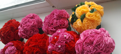 Материалы : - салфетки разного размера и цвета; - степлер; - деревянная палочка; - проволока; - ленты, бусы для украшения; - горшок; - пенополистирол мяч. Салфетка мяч Пошаговые мастерские. Поджаренный из бумажных салфеток Размер цветов для питья зависит от размера салфетки. Сложите салфетку несколько раз, чтобы получился квадрат. В центре закрепите с помощью степлера и затем вырежьте круг. Также можно вырезать круг с неровностями, чтобы цветок был с хаотичными отворотами. Снова и снова вы можете делать легкий нарез, и цветок будет пушистым. Теперь начните поднимать каждый круг, и вы собираетесь запустить цветок. Создайте множество этих элементов, чтобы оно длилось целое дерево. Не стоит забывать и о списке, который тоже можно сделать из салфеток, кроме зеленого цвета. Отдельно приготовьте шарики для питья. Его можно изготовить в технике папье-маше, из ниток или использовать готовую пенопластовую головку. На нашем сайте вы можете найти подробные фотоконкурсы о том, как сделат