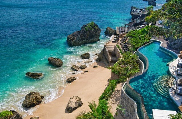 Джимбаран - прекрасные тихие пляжи Бали с мягким приливом и ласковым солнцем, поэтому лучше всего он подходит для отдыха с детьми, а также для людей, которые ищут уединенного спокойного отдыха. Некогда обычный рыбацкий поселок на юго-западном побережье, сейчас стал один из самых элитных курортов Бали. Находится в 10 км от столицы острова – Денпасар и в нескольких минутах езды от национального аэропорта. Благодаря удачному расположению в естественной бухте, пляжи Джимбарана отличаются мягким и спокойным приливом, что отлично подходит для семей с маленькими детьми. Это спокойное уединенное место с небольшими по протяженности пляжами на лазурном побережье Индийского океана в нескольких минутах езды до шумной и веселой Куты, славящейся своей насыщенной ночной жизнью со множеством баров и дискотек. Джимбаран – это самые элитные и дорогие отели и рестораны острова с изысканными морепродуктами. Именно здесь находится самый дорогой ресторан Kisik Bar and Grill at Ayana Resort and Spa