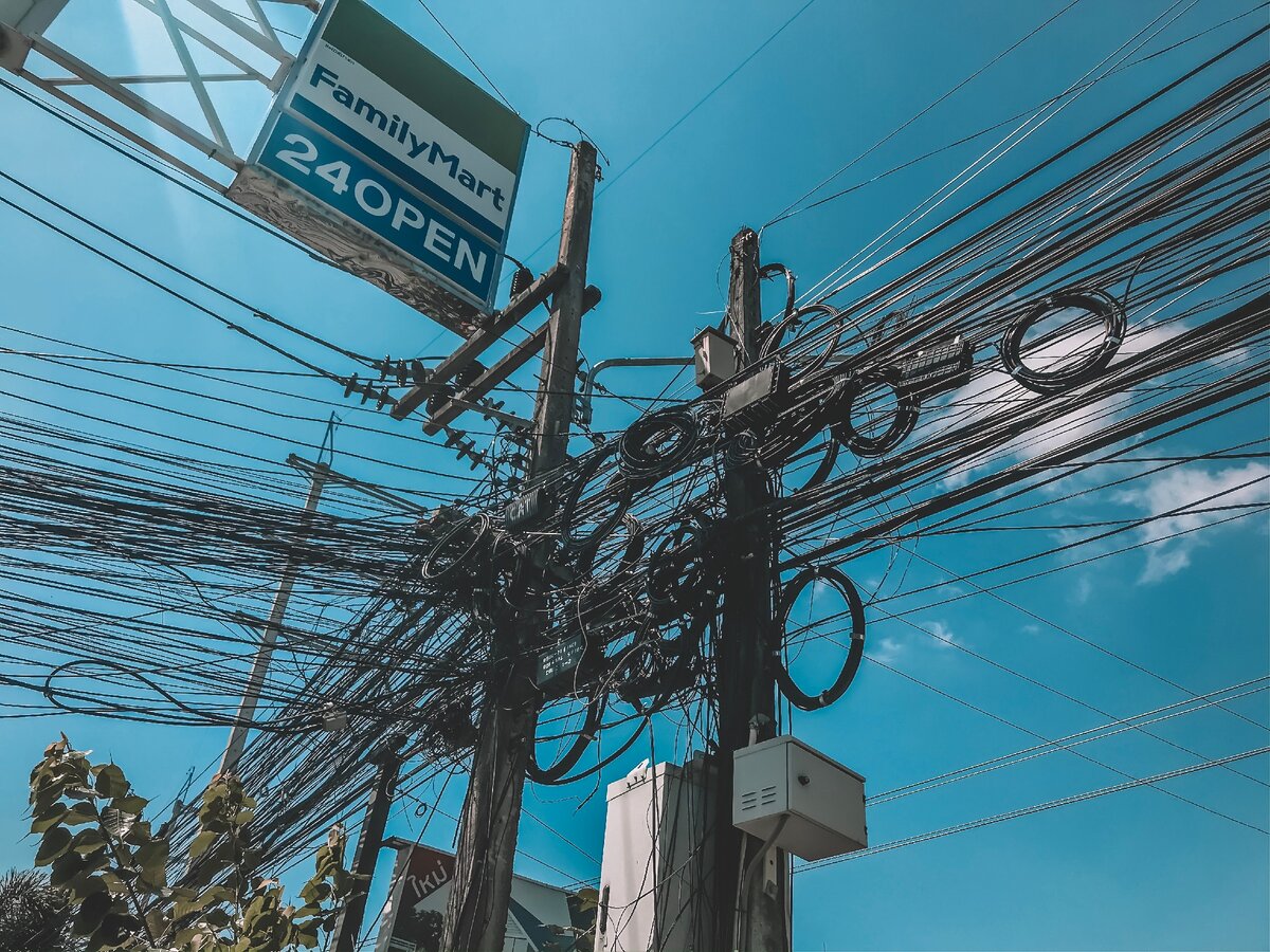 Мы живем в век технологий, когда любую информацию можно передать за доли секунд, связаться с человеком на другом континенте по видеосвязи, про космос вообще промолчу, но посыл вы поняли. Приехав в Таиланд я смотрела на красоту природы, попеременно сменяющийся панорамный вид с перевалов. Но едва мы въехали на тесные улицы Пхукета в глаза бросились провода. Толпа проводов на каждом столбе. Задала вопрос своим друзьям, которые живут на острове уже достаточно длительное время, но они не знали ответа, поэтому я решила изучить этот вопрос. Так почему же в Таиланде так много проводов на столбах? Оказывается это телекоммуникационные провода (кабельное, интернет и тд). Зачастую эти провода оптоволоконные, специально для передачи световых сигналов, или под низким напряжением. А вот выше на столбах крепятся уже провода с высоким напряжением. В Таиланде вся власть по прокладке проводов передана в руки частных компаний, а значит каждый работает как ему удобнее и быстрее. Арендовать линии или созд