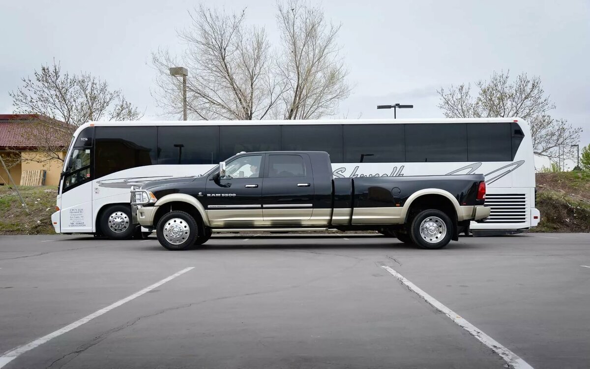 Добрый день. Сегодня предлагаю вам познакомиться с американскими пикапами. Точнее с самыми крупными из них. У нас в России пикапы не сильно распространены, и представлены в основном японцами типа Л-200 и его производными, либо Форд Рейнджерами. Ну и Патриотом Пикап или Нивой 2329. Но в последнее время я все чаще встречаю на дорогах такие крупные пикапы как Тундра, Форд Ф-серии, Доджи, GMC и другие. В Америке пикапы это достаточно крупная доля автомобильного рынка. Их покупают потому что это достаточно практичные и неприхотливые автомобили. Не стоит забывать, что и уровень жизни у них другой, поэтому могут себе позволить. Для управления некоторыми американскими пикапами в России понадобится категория С, т.к. масса превышает 3.5 т. Итак, приступим. Начнем сразу с тяжеловеса. Dodge Ram 5500 Long Hauler. Один из самых крупных пикапов в мире. Его длина составляет 7.3 метра, а колесная база чуть больше 5-ти метров. Вес автомобиля составляет 4,2 тонны, а полная масса автомобиля может превы
