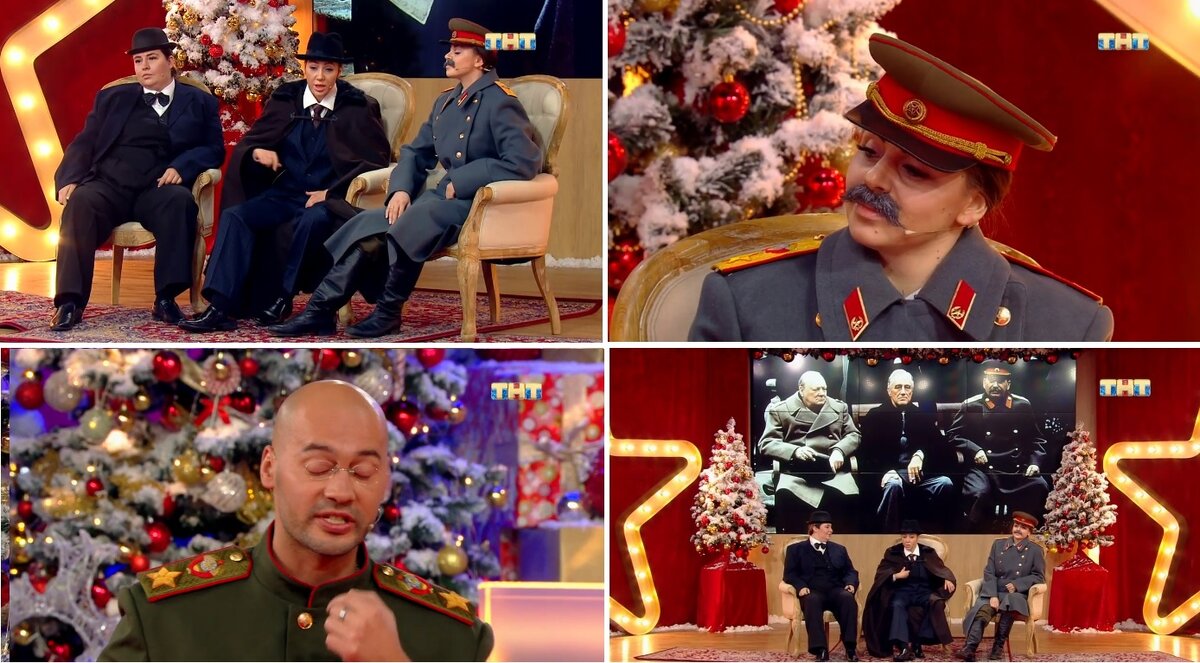Вот вы тут сидите, а на "Дом-2" женская сценка идёт: беременный Сталин, кормящий Рузвельт и беременный Черчилль обсуждают грудное вскармливание и роды. Сталин в финале плачет: "Я - дважды мама!", муж дарит ему розы и крепко целует в усы. А ведущий у них - Берия.