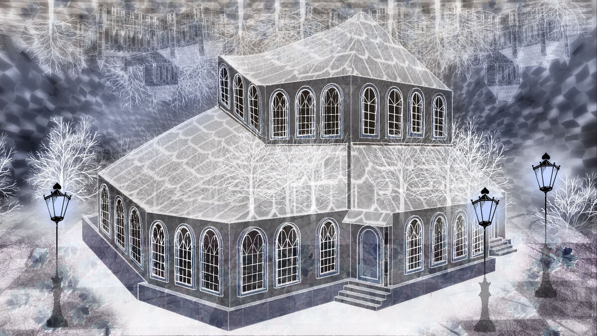 Смотрю на дом, белоснежный, с башенками и лестницами, с камином в большом зале.