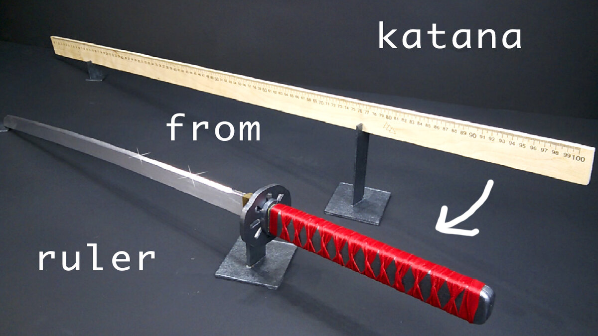 Всем привет друзья, наконец-то я закончил очередную свою самоделку. На этот раз я постарался сделать максимально реалистичную катану из обычной метровой линейки. Весь процесс как и всегда вы можете увидеть на видео , а описание процесса и сложностей которые у меня возникали, я как всегда опубликую чуть ниже. Приятного просмотра... Прежде всего скажу почему выбор пал именно на линейку. Дело в том, что линейка идеально ровной формы, хорошо отшлифована, кроме того в домашних условиях очень не просто возиться с необработанной доской или листовым деревом. Честно говоря я не думал, что линейку получиться распилить электролобзиком, так как опасался что от сильной вибрации она просто треснет . Однако попробовав , я понял , что ошибался. Не знаю из какой породы дерева сделана эта линейка, но она достаточно прочная, легко "перенесла" электролобзик, без каких-либо сколов и трещин. Во всем этом процессе распил - это наверное самое легкое, включая даже "ручные" вырезы на рукояти. Один из с