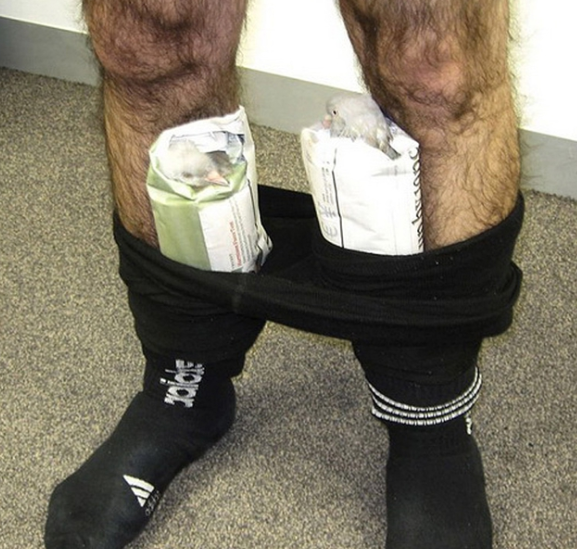 С улучшением контроля, контрабандисты прибегают к более изощрённым способам сокрытия. О 10 самых необычных случаях провоза контрабанды мы и расскажем. В аэропорту Мельбурна работники обратили внимание на пассажира со странной походкой, летевшего из ОАЭ. Когда мужчину отвели на досмотр и попросили снять штаны – подозрения оправдались. В Дубае австралиец посетил выставку птиц, и решил прихватить парочку пернатых с собой. Мужчина завернул их в бумагу и поместил в трико. Птиц освободили и отправили на обследование. В багаже мужчины полиция также нашла два птичьих яйца. Другой контрабандист-птичник из Индии подошел к делу более тщательно. Он попытался вывезти из Индии несколько птенцов колибри. Способ перевозки был похожий – птиц мужчина также усадил к себе в штаны. Он соорудил своеобразное гнездо в районе трусов, завернул каждого птенца в тряпочку и усадил в специальные ниши. К счастью, птенцы были упакованы настолько аккуратно и бережно, что совершенно не пострадали при перевозке. Кон