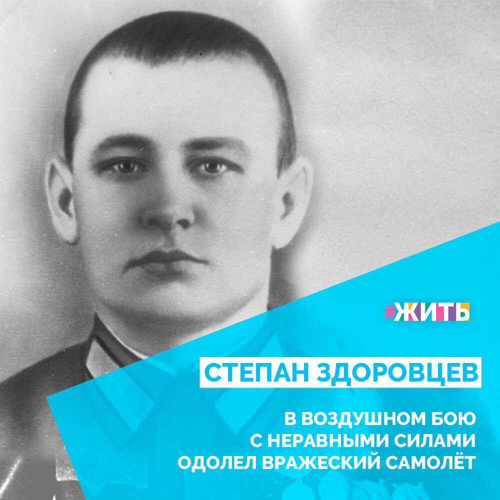 Участник Великой Отечественной войны с первого её дня. Здоровцев Степан Иванович отличился, прикрывая в составе полка воздушные подходы к Ленинграду в районе Пскова. 28 июня 1941 года в воздушном бою с тремя вражескими бомбардировщиками, израсходовав боезапас, таранным ударом сбил немецкий самолёт, сохранив при этом свой