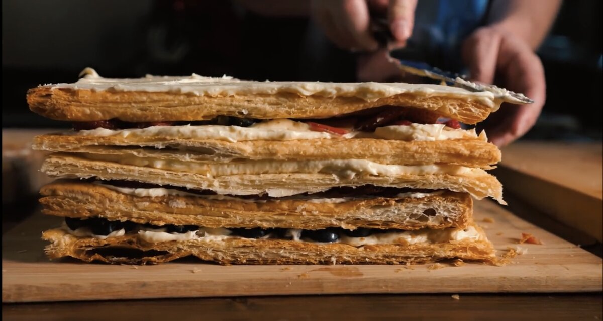 Всем нам с детства знаком вкус, пожалуй, одного из самых известных тортов в нашей стране, а возможно и в мире. Но со временем вкус этого десерта испортился, так как все чаще изготовление пускают на конвейер. Из этой статьи вы узнаете как сделать настоящий Наполеон, который удивит своим вкусом каждого, кому вы дадите его попробовать! Для рецепта нам понадобятся: Для начала достаём слоеное тесто и раскатываем его скалкой примерно в 2 раза После выкладываем тесто в форму для выпекания. Важно! На этом шаге мы задаём размеры торта, поэтому вы должны сразу определиться с тем, какой длинны будет ваш Наполеон. Обрезки теста не выкидываем, они нам ещё понадобятся. Для того, чтобы тесто поднималось равномерно накроем его чем нибудь сверху. Для этого идеально подойдёт такая же форма для запекания. Ставим тесто выпекаться в духовке при температуре 240 градусов на 10 минут каждый слой. Лучше выпекать каждый корж по отдельности, тогда они получатся одинаковыми! Теперь преступим к крему Его делать с