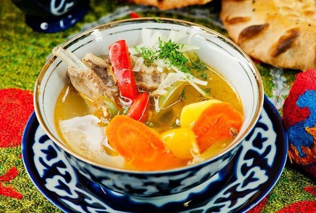 «Где бедность – там пестрота, и каждый нищий сумеет... Украсить бедный халат красным, желтым, зеленым. Не требуй же, Навои, диван разукрашивать ярко: Ведь сами стихи пестрят красным, желтым, зеленым», – писал Алишер Навои. Красным, желтым, зеленым и расцвечена удивительная в своей простоте и изысканности шурпа с помидорами. Бюджет блюда совсем невелик. Ну сколько будет стоить горка костей без мяса, четыре картофелины, пять помидоров,1 морковка, несколько перьев зеленого лука и щепотка специй? Все, что может найти дехканин в своем доме. Но ведь в чем задача: как он сумеет объединить это все в красивом блюде? Хотите знать? Тогда начинаем… ИНГРЕДИЕНТЫ СПОСОБ ПРИГОТОВЛЕНИЯ Уложите кости в кастрюлю вместе с луковицей. Влейте 2,5–3 л воды. Доведите до кипения и снимите пену. Варите на минимальном огне 3 ч. Процедите бульон в чистую кастрюлю. Если от костей после варки будет что-либо отделяться – полоска мяса, желеобразная ткань на суставах, – все это нужно снять, мелко нарезать и верн