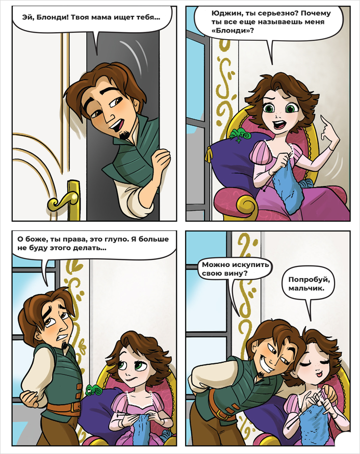 Диснеевские мультфильмы с очаровательными и милыми принцессами любимы многими. В сегодняшней статье вы увидите, то, как могла бы происходить жизнь этих девушек за кадром, в иллюстрациях от талантливого художника. 1. Плохая память В семейной жизни у людей вырабатываются собственные привычки, отказаться или перестроится от которых иногда довольно проблематично. 2. Шутники Семейные шуточки есть не только у обычных людей, но и у диснеевских принцесс. Мулан со своей старушкой тоже не сидят на месте и развлекаются, как могут. 3. Современное искусство Крохотный дружочек Рапунцель всегда придет ей на помощь, особенно в моменты творческого тупика. 4. Растяжка Каждая принцесса знакома с тем, как трудно всегда поддерживать себя в хорошей форме. Мушу усомнился в физической подготовке Мулан и решил доказать обратное. 5. Ариэль и музыка Жизнь у Русалочки конечно полна невероятных вещей, но некоторые земные штуковины ей все же удается понять с трудом. Вот одна из таких забавных ситуаций. Приобрести