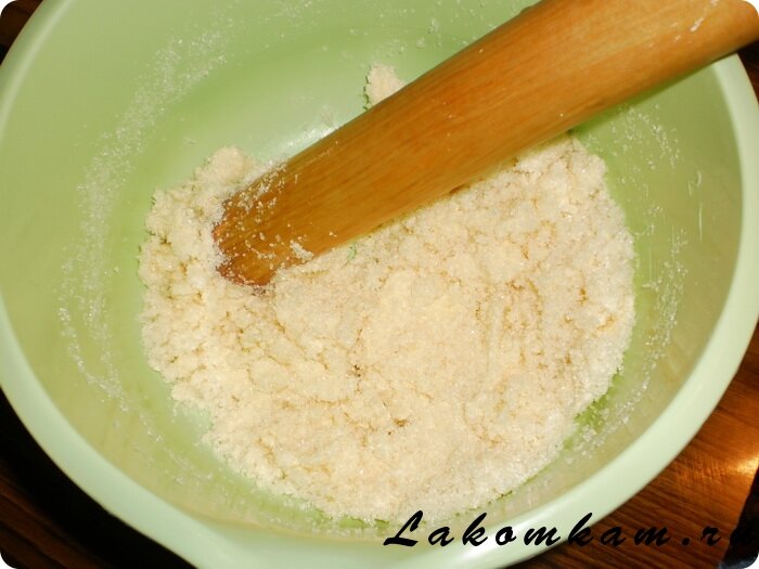 Маргарин с сахаром взбиваем миксером или растираем толкушкой.