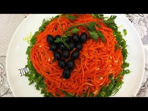 Нам понадобится: копченные окорочка куриные - 2 шт. шампиньоны - 400 гр. репчатый лук - 2 шт. майонез-по вкусу. морковь по корейски - 200 гр. яйца вареные - 6 шт. маслины-10 шт. петрушка-2 веточки. зеленый лук - 1 пучок. огурцы соленые - 2 шт. растительное масло - по вкусу. Рецепт приготовления салатика смотрите в видео: